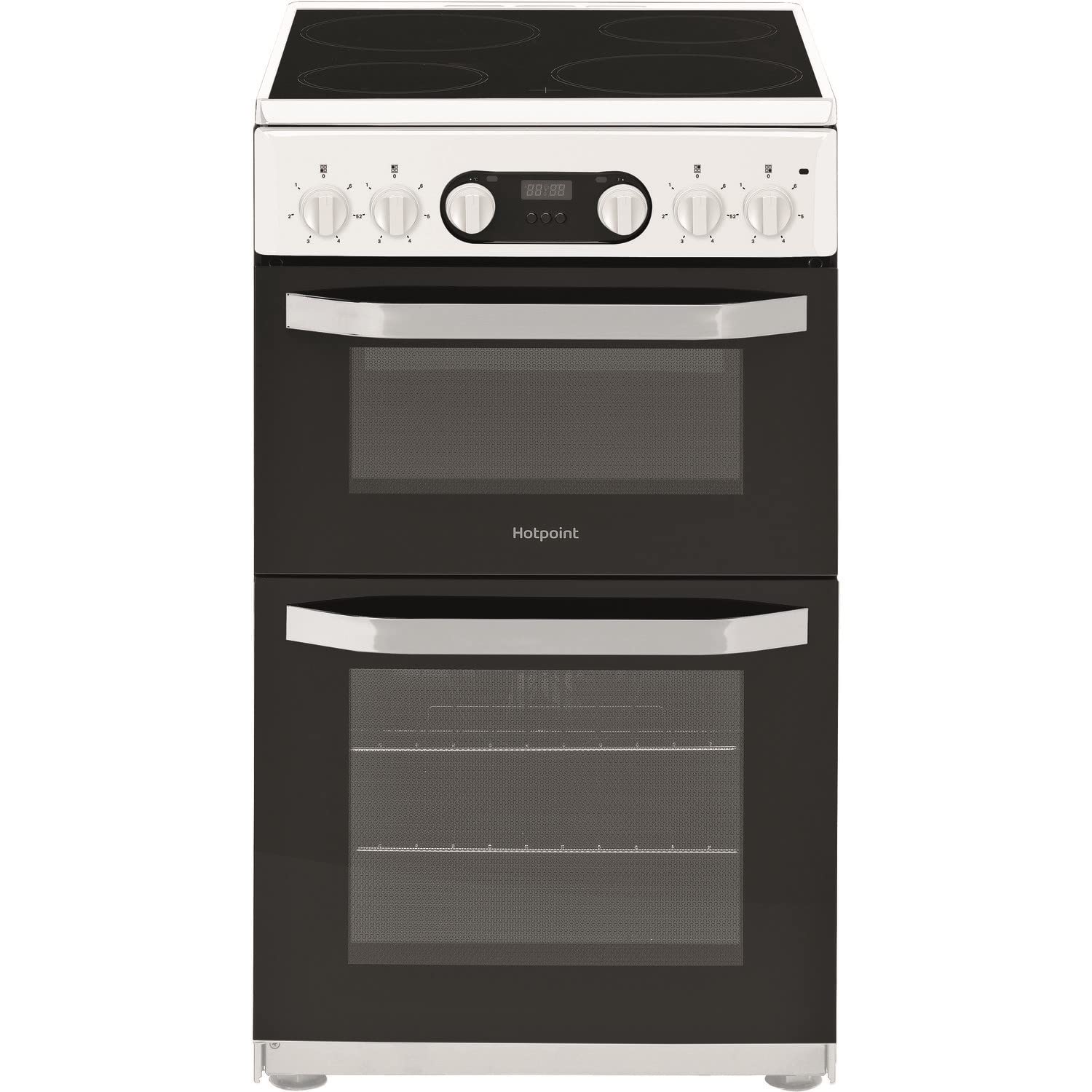 Details: The Hotpoint HD5V93CCW/UK 50cm electric double cooker in white saves you time and energy with Circulaire Fan Cooking, which circulates hot air for an even temperature throughout the oven. Spend more time cooking, and less time cleaning, thanks to the special Catalytic panels that catch fat spits and grease, removing them naturally during the cooking process, making it easy to wipe away clean. It comes with a smoothly designed glass ceramic hob that has 4 radiant cooking zones that can be used for small or large pans. Thanks to its glass surface, it makes it very easy to clean once the cooking zones have cooled down. You can time your food precisely by setting the desired duration of your cooking with the handy Minute Minder, so you don’t have to keep checking your food. This electric double cooker stays cool on the outside thanks to the Cool Touch Door, protecting you with extra safety in the kitchen.
